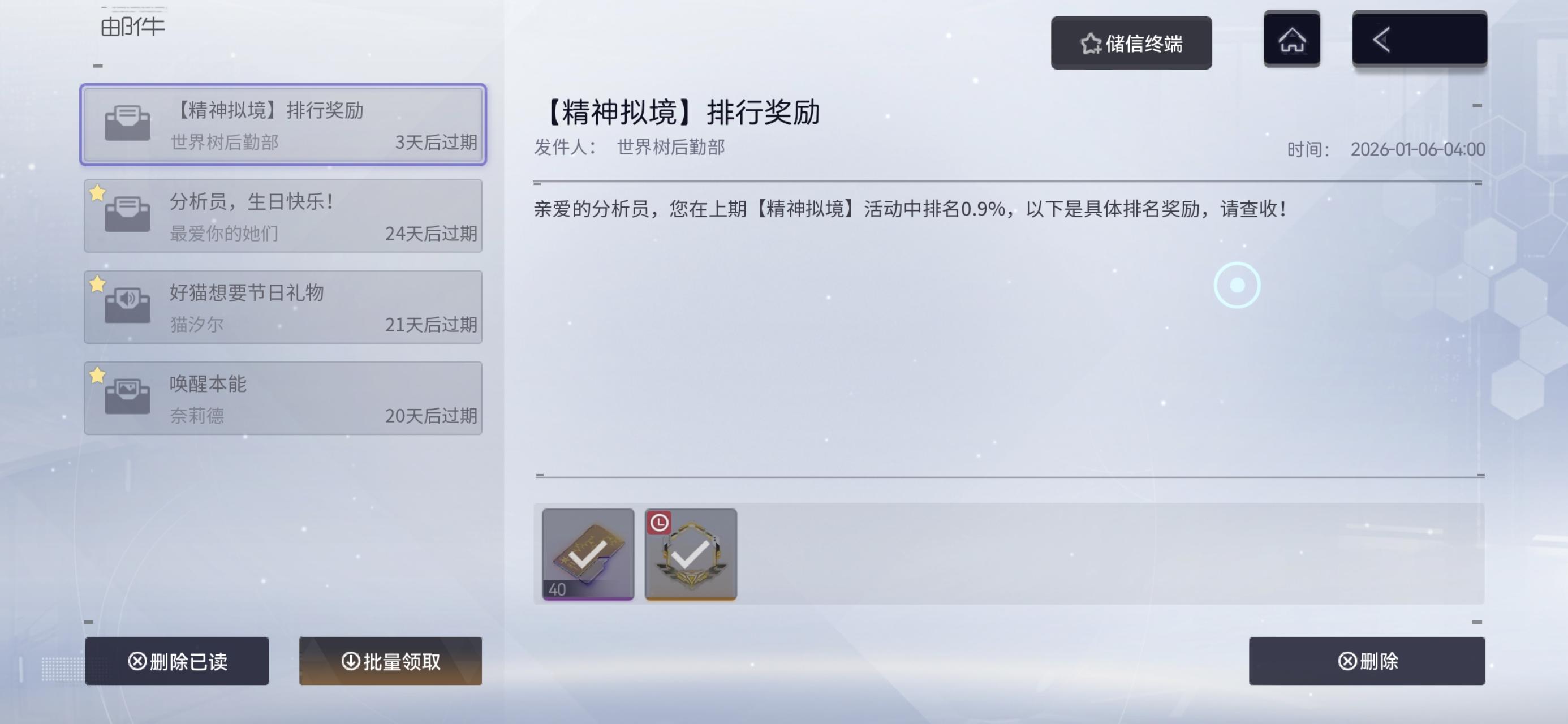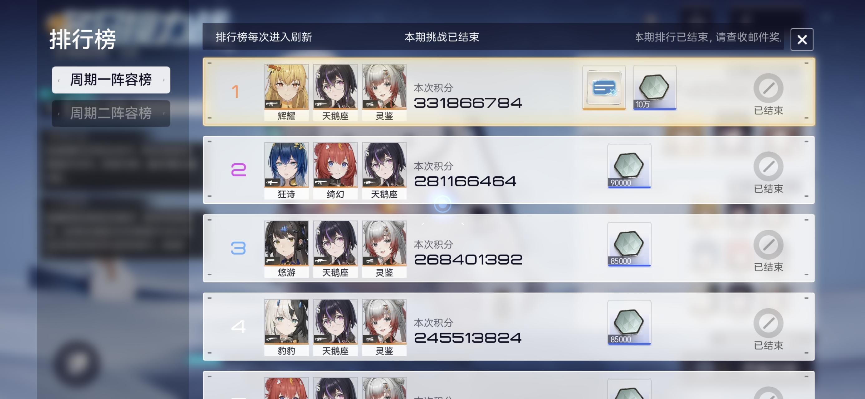 排行奖励 (单选)