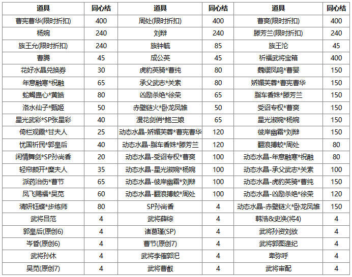 1、同心结可兑换奖励,若兑换奖励是在此次活动前已拥有的永久武将、皮肤、三国秀,则无法重复兑换。