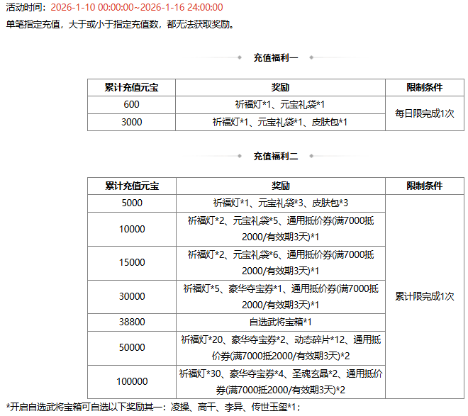 活动时间:2026-1-10 00:00:00~2026-1-16 24:00:00