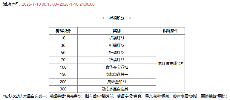 活动时间:2026-1-10 00:15:00~2026-1-16 24:00:00