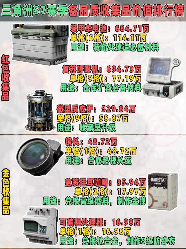 三角洲S7赛季各品质收集品价值最新排行榜!