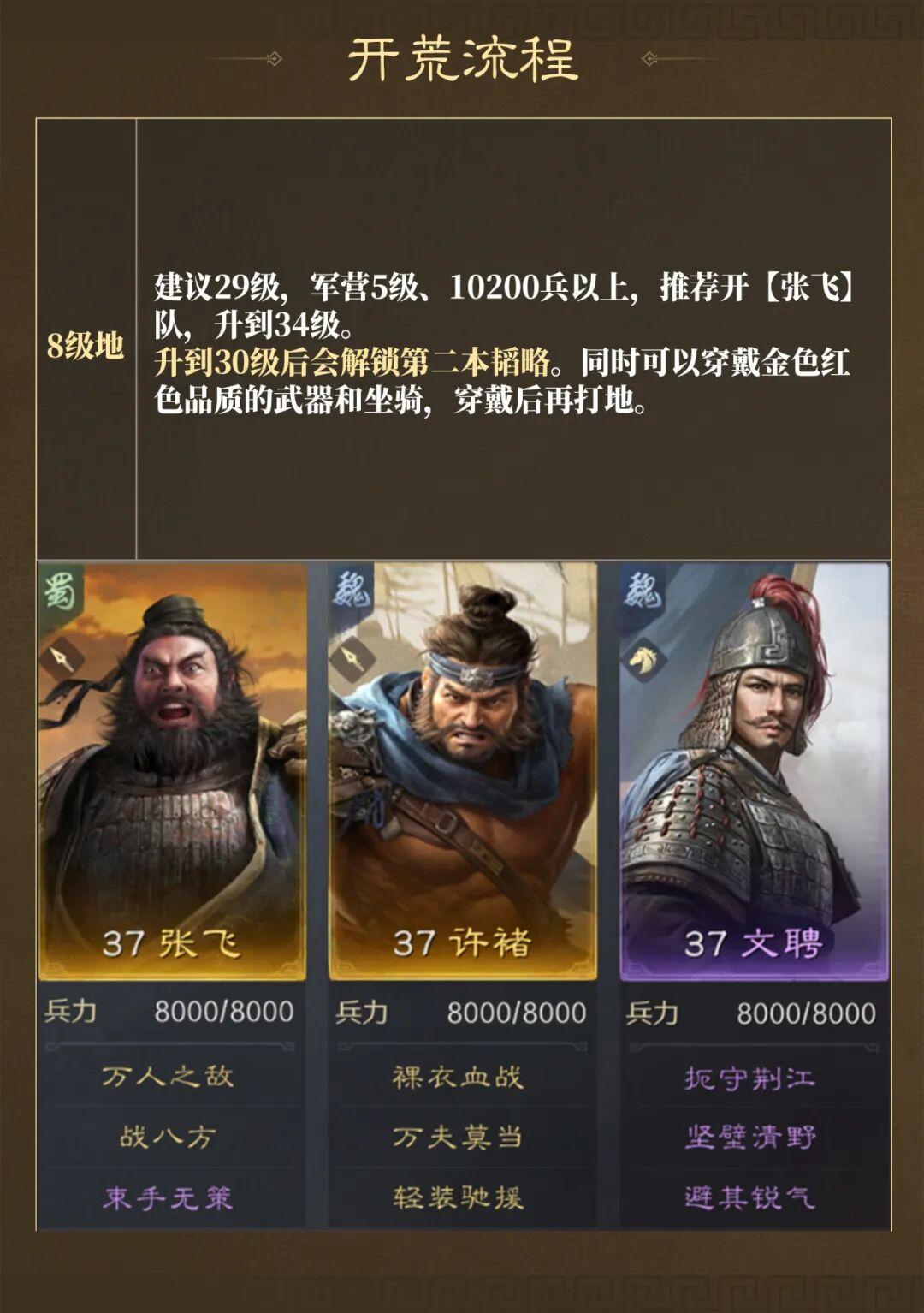 开荒期间可以选择方略-务农,前期第一阶段可以将外城地进行土地转换,可多找克制的资源地进行攻占,再转换地,建议优先转换石料,第二阶段可以把8级开发土地升级至9级地,可是前期必须留意的开荒小技巧。