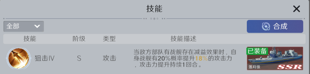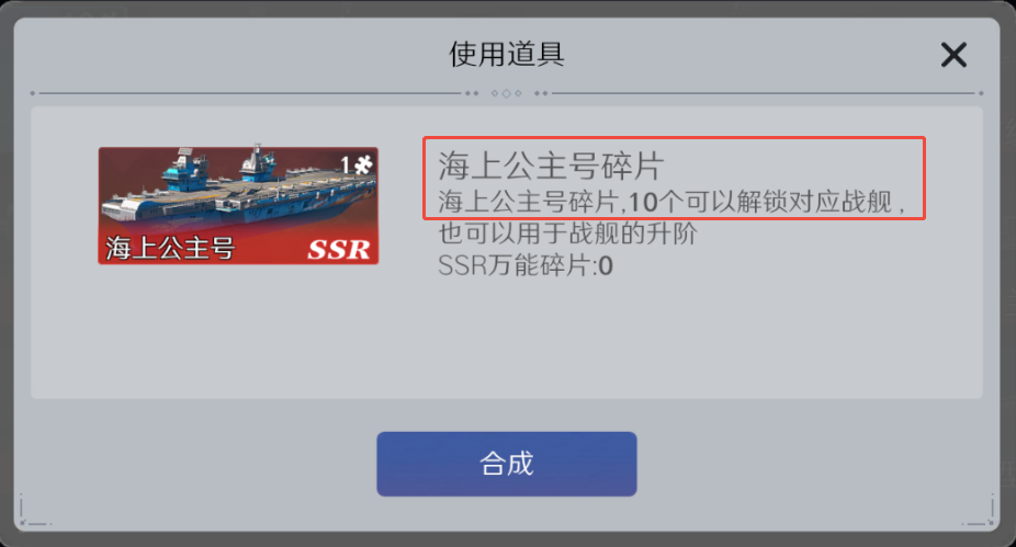 小TIP:使用碎片合成战舰时可混入万能碎片;升阶、天赋升级同样通用,先囤万能再定向补缺,最省资源!