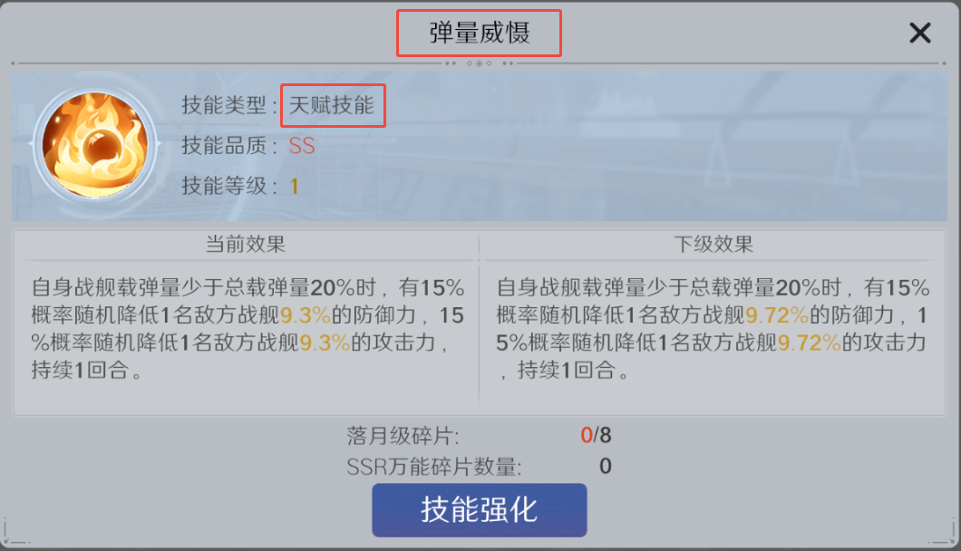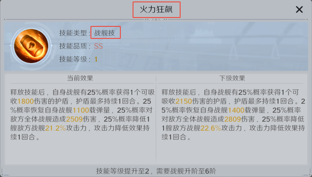 战舰技和天赋技能每次提升具有伤害系数+特殊效果。