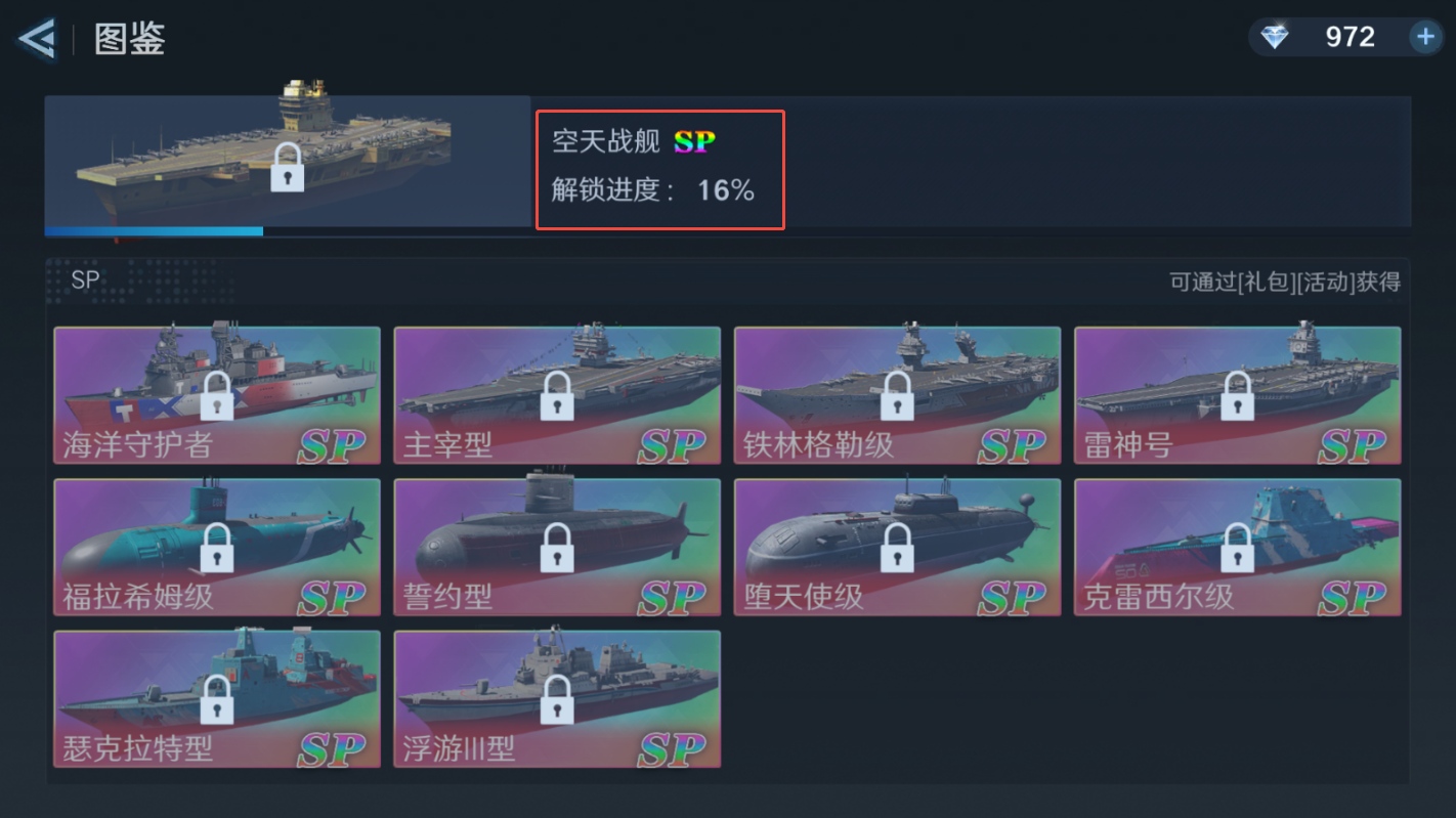 小彩蛋:每点亮1次图鉴(非SP舰),顶部SP解锁进度条+1,进度条满直接送「SP级空天战舰」,战力飞升和收藏爽感双重满足!