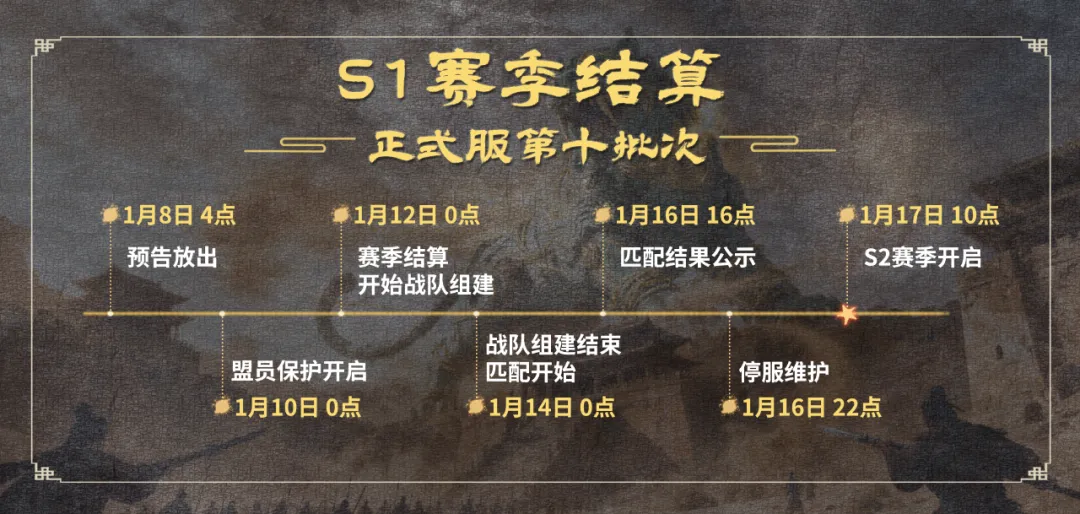 请S1赛季第十一批次的各位主公合理安排时间,及时完成战队组建,为S2赛季做好充分准备。新的战场即将开启,愿诸位厉兵秣马再创辉煌!