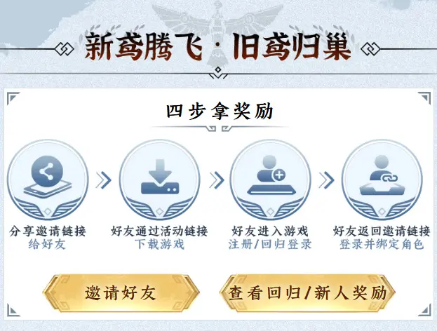 在活动期间,只要邀请新玩家下载注册或流失14天以上老友回归,每成功邀请1人,邀请人将获得100点「飞鸢神木」积分 !邀请越多,积分越厚,抽奖次数直接拉满~