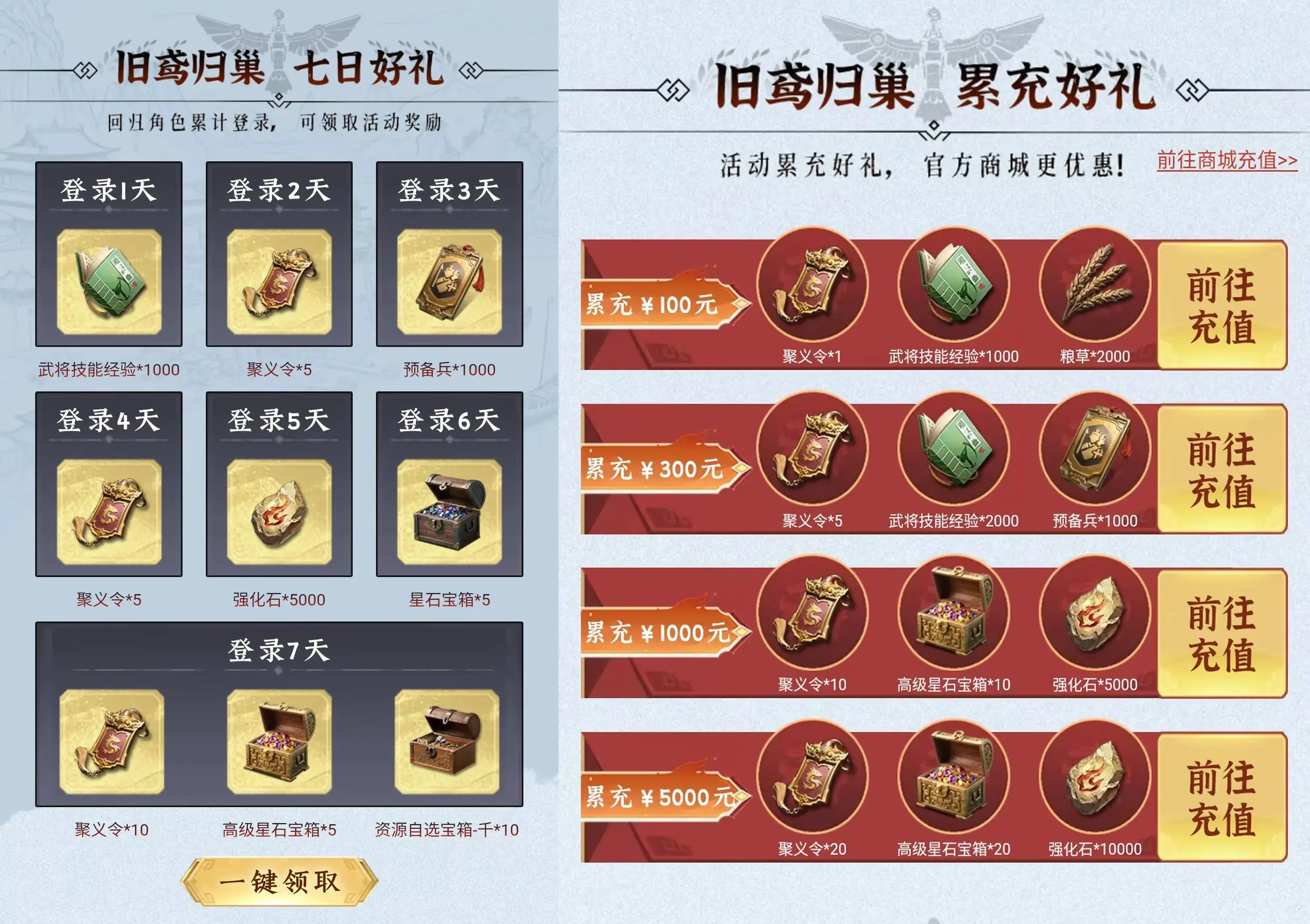 不管是受邀回归的九州老友,还是新入坑的萌新玩家,都有七日签到好礼与充值优惠福利!助力主公们九州扬帆!