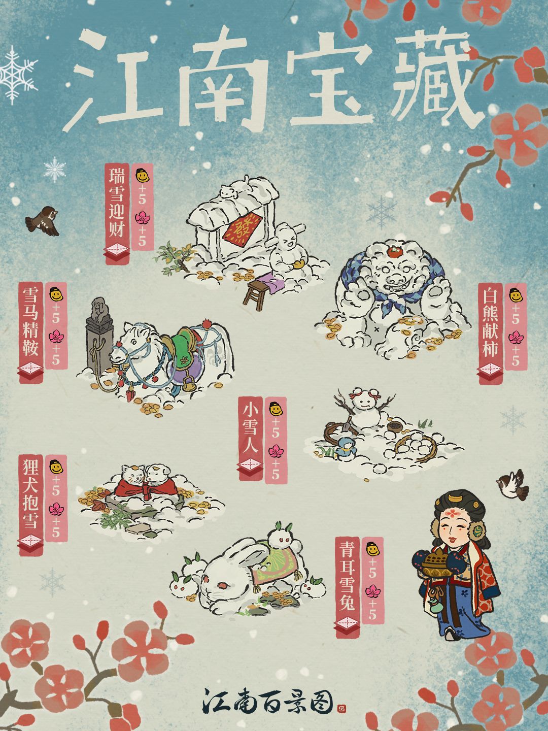 ⛄全新建筑「狸犬抱雪」「青耳雪兔」「白熊献柿」「雪马精鞍」入驻「雪中小兽礼包」,全新建筑「瑞雪迎神」入驻「瑞雪迎神礼包」,感兴趣的知府大人请不要错过~