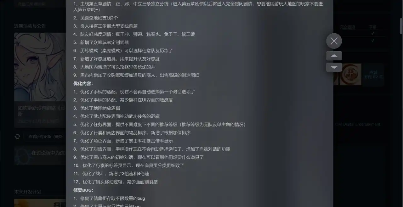 而本次游戏如约迎来了第四次大更新,他们没有跑路!这次的更新量远超以往,首先是主线迎来了第五章,这次主线进入之后是完全封闭的剧情模式,因此朋友们打算继续体验大世界玩法的话需要注意一下。
