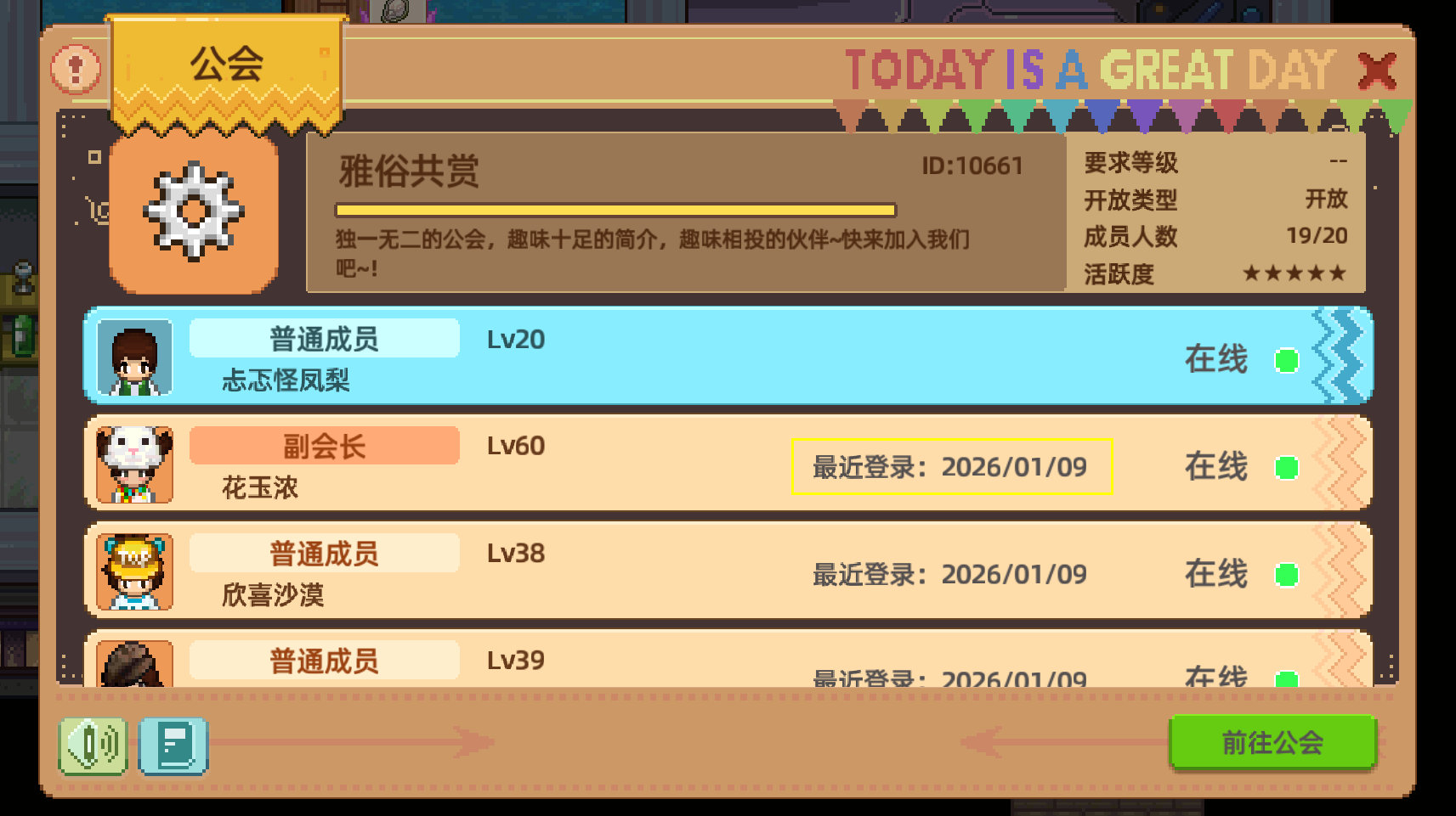 4、公会界面新增显示成员“最后上线时间”。