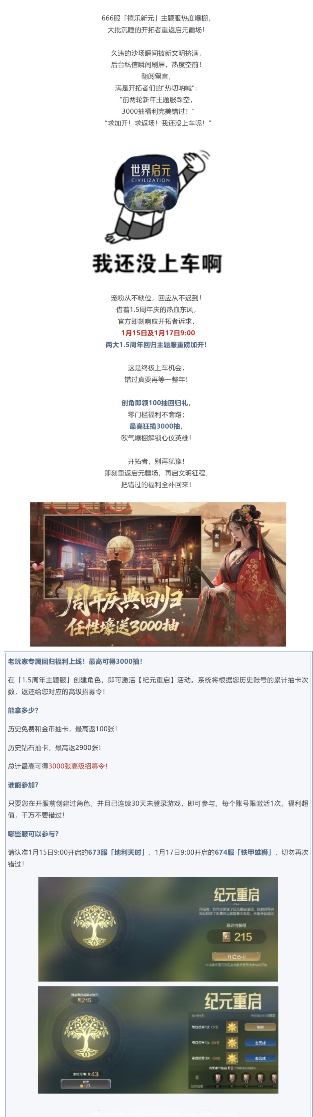 文明再启,再来亿局!1.5周年主题服即将开启!
