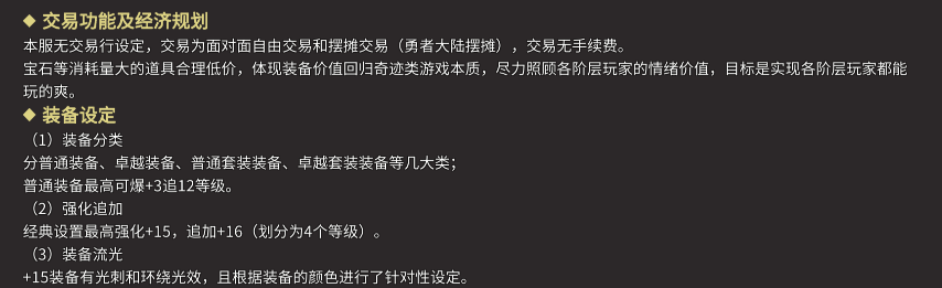 - 零手续费交易:点对点面对面交易、全服摆摊系统双开放,没有任何收益损耗!刷到的祝福宝石、灵魂宝石,或是恶魔广场掉落的卓越装备,想卖多少就定多少价,到手金额一分不少。