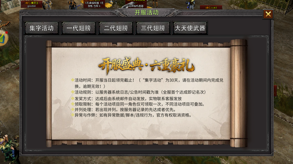 - 冲榜奖励:服务器冲榜活动正在进行,等级榜、战力榜前 10 名能拿永久称号、高阶宝石,搬砖之余还能争荣誉;