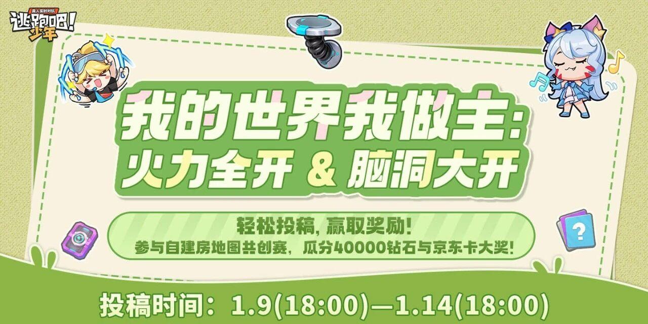 面向所有玩家的自建房共创活动开启!只需在自建房中设计地图与玩法,符合“火力全开”或“脑洞大开”任意赛道要求,即可投稿。