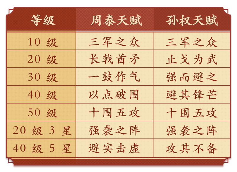 周泰与孙权的天赋搭配如下表: