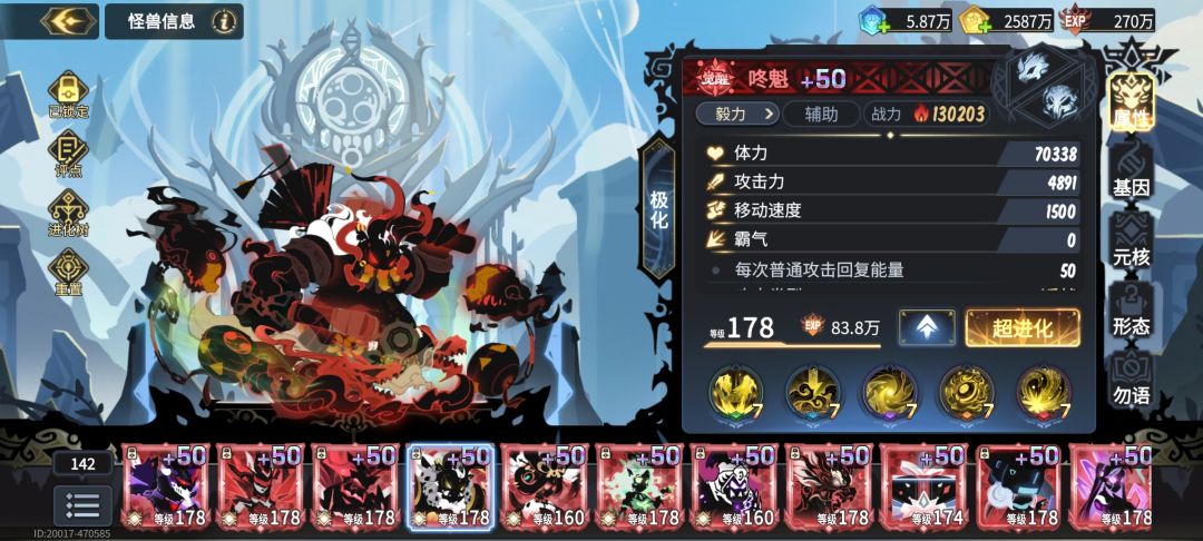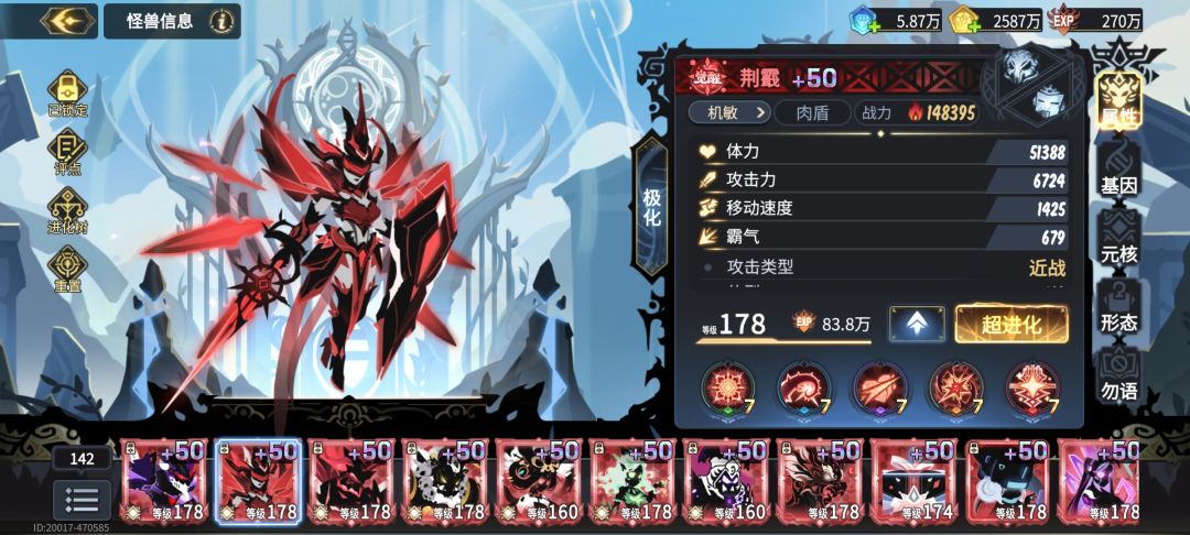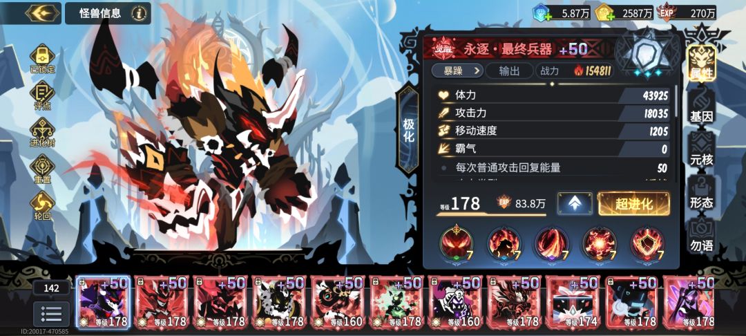 基因:大基因速度或者霸气,小基因体力,体力5、6w即可。