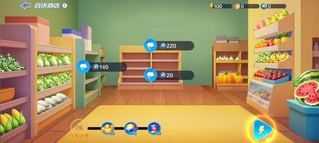 当合成积分达到要求即可前往对应的关卡操作完成任务,如百货商店中车友们就可以消耗积分装填货架,画面中的货架也会随着车友们的任务进度变得丰富起来噢~