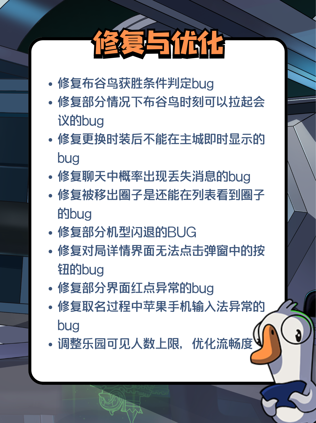 由于工程师鹅需要一些时间整修乐园,《鹅鸭杀》将于