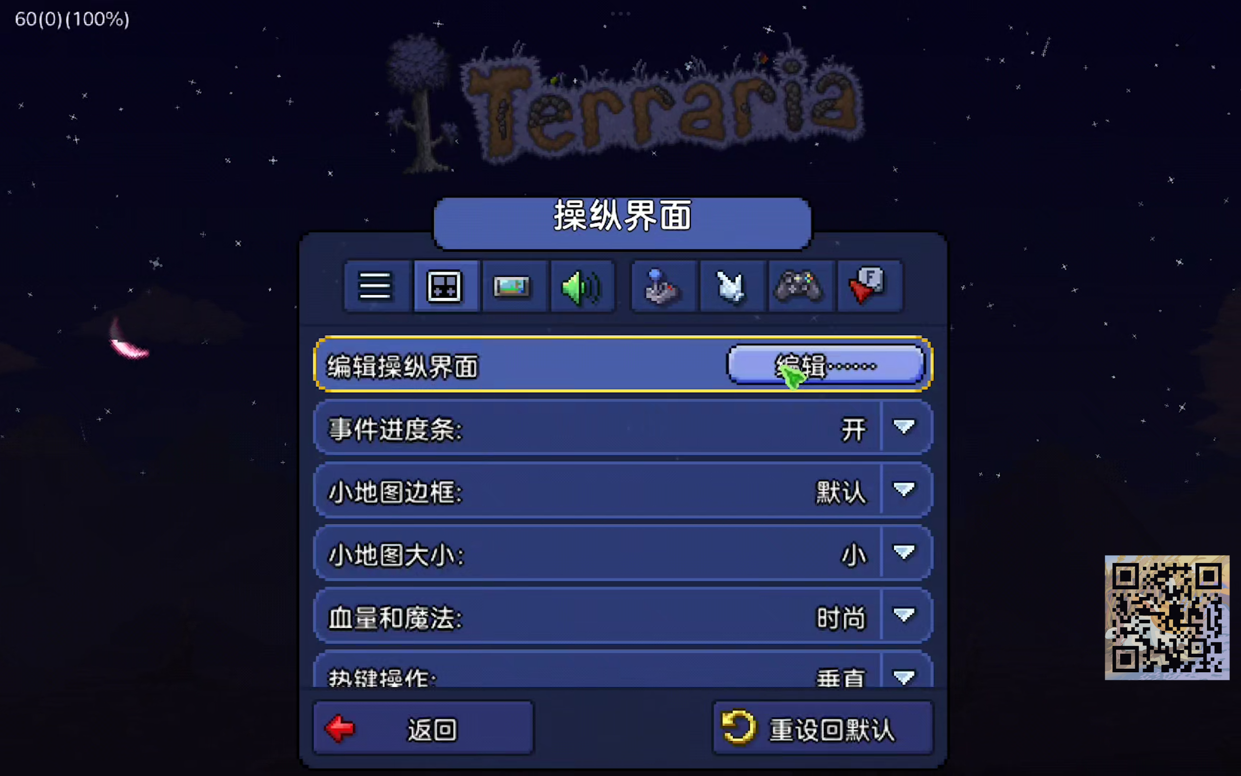 以上是关于旅行模式能力菜单的全部介绍。接下来是第二部分,移动端添加旅行模式快捷键。除了刚刚的暂停界面,其实旅行模式在移动端也可以设置物品栏快捷键,甚至于可能比电脑端还要更方便,我们可以点开设置界面,移动端以心动国服的汉化为准(括号内是皮皮蛙汉化),在设置里面找到操纵界面(布局),点击编辑操纵界面(界面布局)——