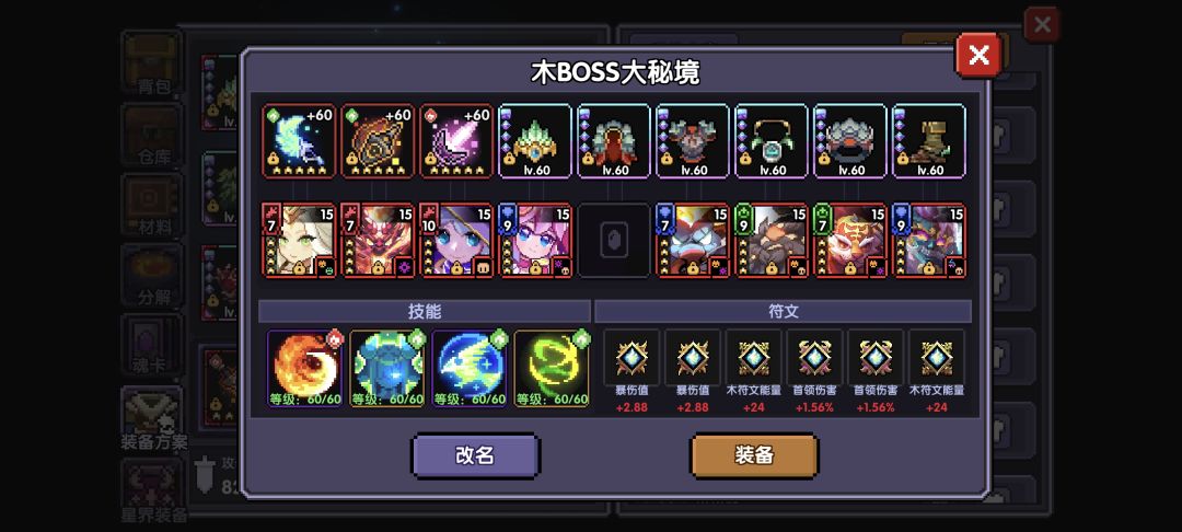 右侧:优先点满 首领伤害/护穿/暴击,其次木攻/爆伤,最后攻强/无限攻强8:3点