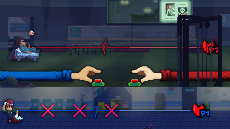 游戏里,玩家会扮演一个实习医生,为病人进行心脏除颤治疗。治疗过程会围绕「一二三四五六七」的简单音乐节奏展开,玩家只抓准心脏跳动的节拍在「七」的拍子按下空格,就能完成关卡。