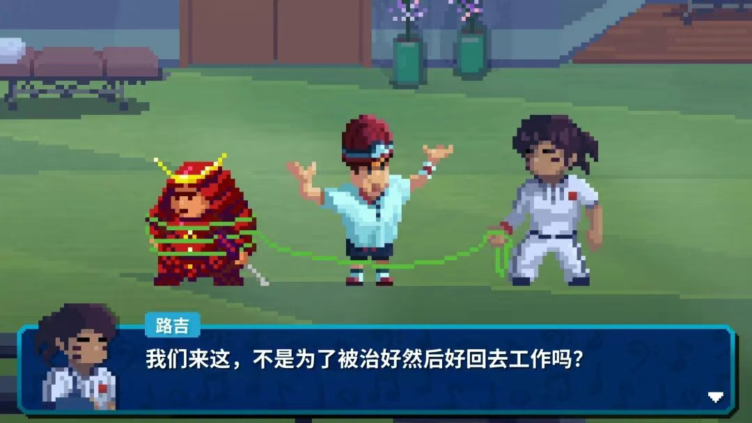 有了充沛的资金储备,团队也更沉得住气打磨细节了,一个最好的佐证,就是《节奏医生》的本地化。比如中文版里,不仅还原了原版语境下的吐槽、抱怨,甚至患者的自嘲,也融入了中文语境里的接地气的梗和措辞。