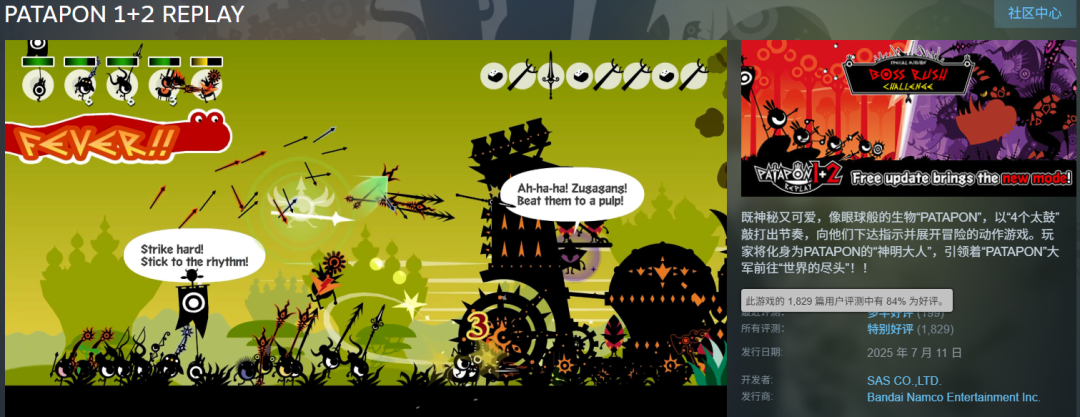 于是在近几年里Steam上连续涌现了《Hi-Fi RUSH》《Trombone Champ》《节奏裂隙》《UNBEATABLE》等多款热销的节奏游戏,去年《啪嗒砰》移植、《太鼓达人》移植,也进一步炒热了节奏品类,甚至还有《萌萌夹击》这种奇葩新游来搅局。