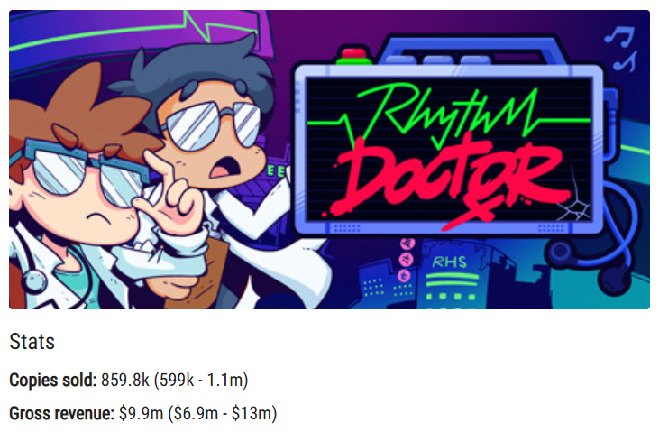 距离《节奏医生》正式版发售刚好过了1个月,这款游戏在Steam的预估销量已经增长到86万套,总流水接近1000万美金,换算过来差不多是7000万元。