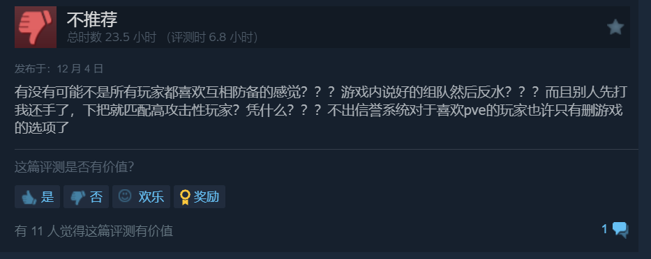 因此不少玩家在Steam上打出了差评。