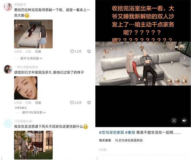 玩家的不满早有铺垫:游戏纸片人互动全是套路,传声筒功能要喊关键词才触发,翻来覆去就那几句台词,跟人机聊天一样。亲密动作模板化,来来去去就那几个,毫无新鲜感。