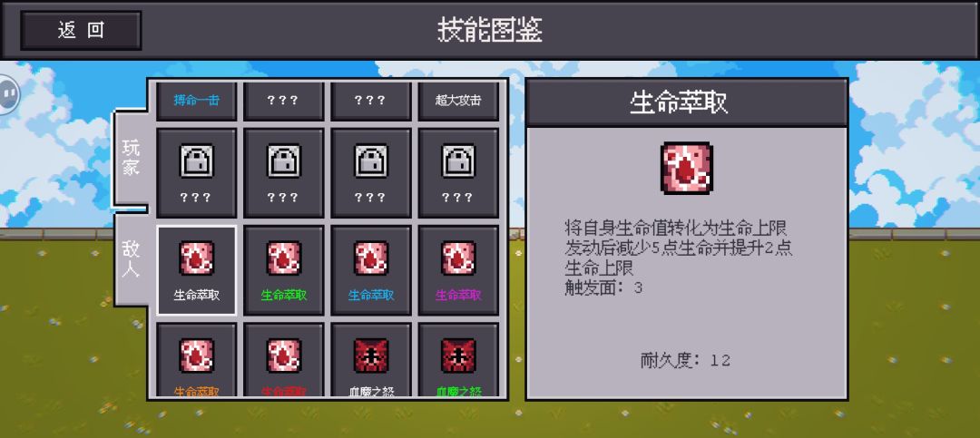 前期过渡点数为3,3,3,3,3,x(主要使用生命萃取叠血,随便抓个加毒的技能,因为毒会每回合增加,避免打不死怪)。