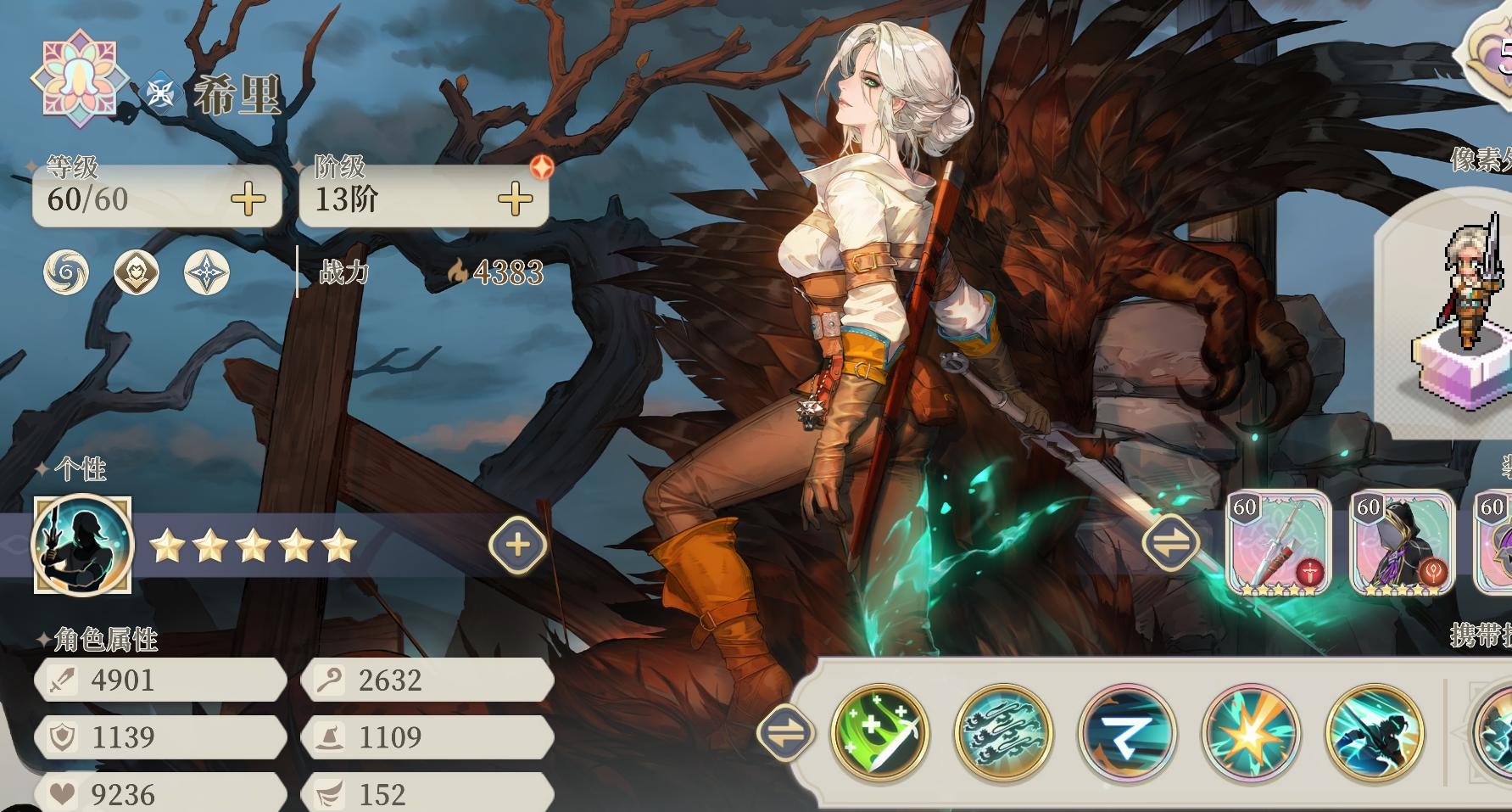 作为本次联动的“福利担当”,希里登陆即送,性价比拉满!她完美还原了原作中“时空少女”的灵动特质,核心玩法围绕“闪现+再动+定身”展开——冲锋普攻可定身敌人,闪现后能再次行动并锁血保命,冲锋或传送后还能回血,机动性拉满。看似是福利角色,实战表现却相当亮眼:速度高达252,可先手给敌人上定身debuff,触发联动阵营的增伤光环,为后续输出铺路;大招能秒杀被定身的敌人,洞后推四格的效果在对策特定关卡时堪称奇效,完美填补了新手玩家缺少高速突击角色的短板。