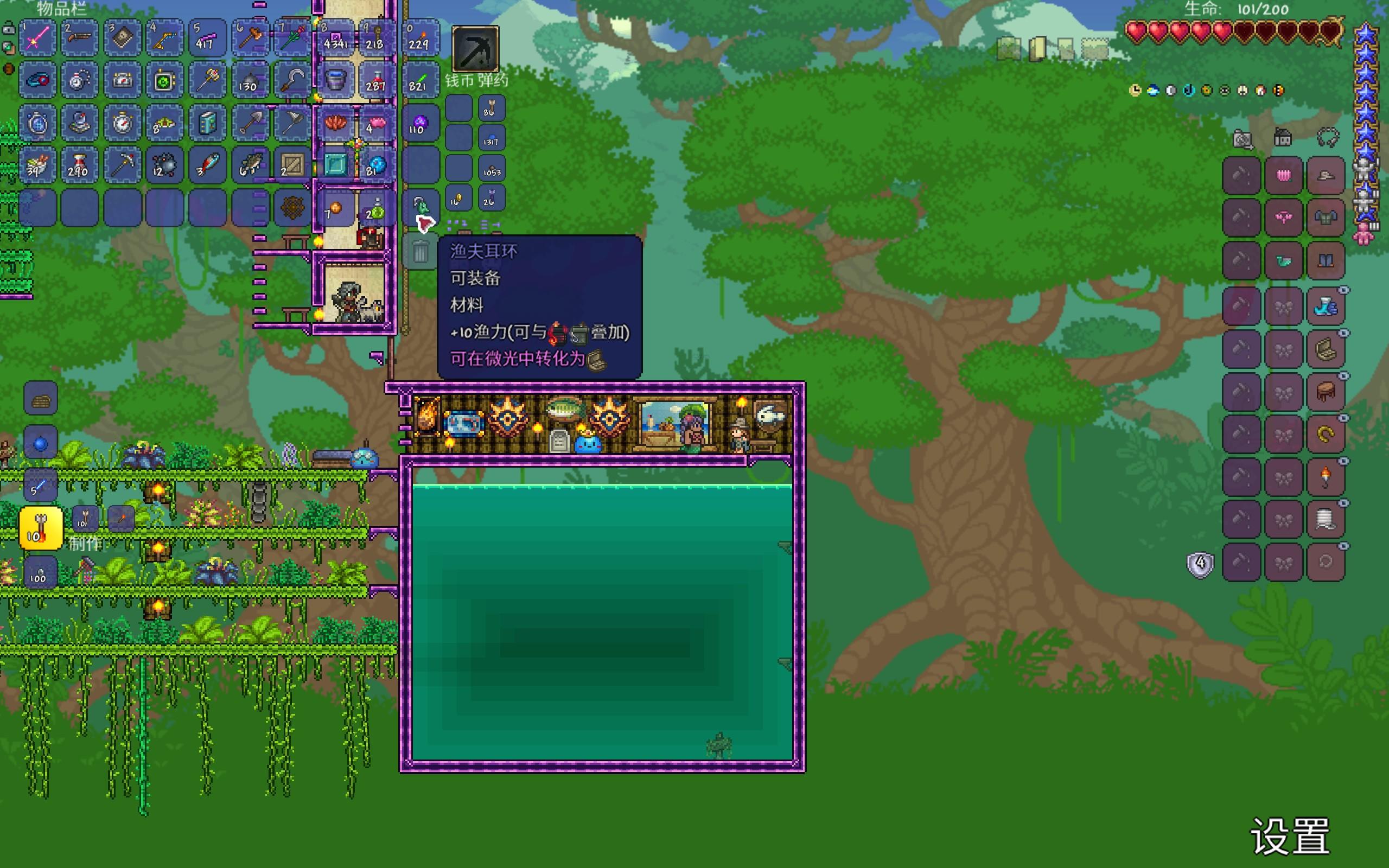 给钓鱼池造了个神圣环境,钓点光明之魂和碎魔晶,说不定运气好还能给个水晶蛇