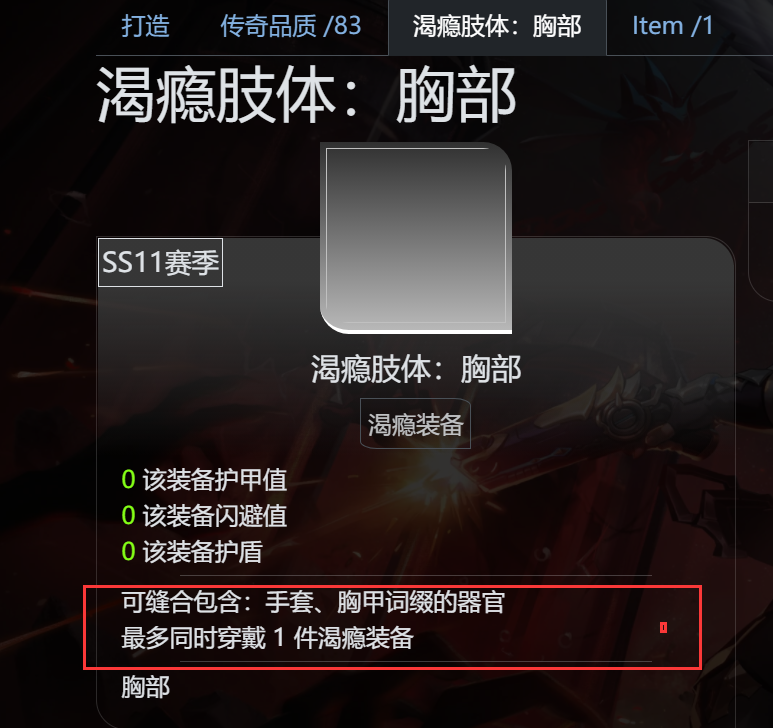 1️⃣最多同时穿戴 1 件渴瘾装备,可以打两个暗金词条