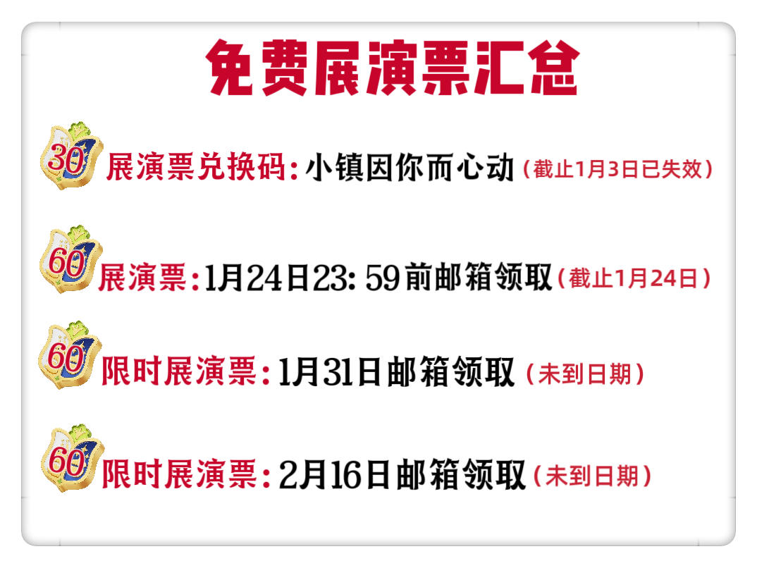 小镇最全福利汇总210展演票+700蓝钻