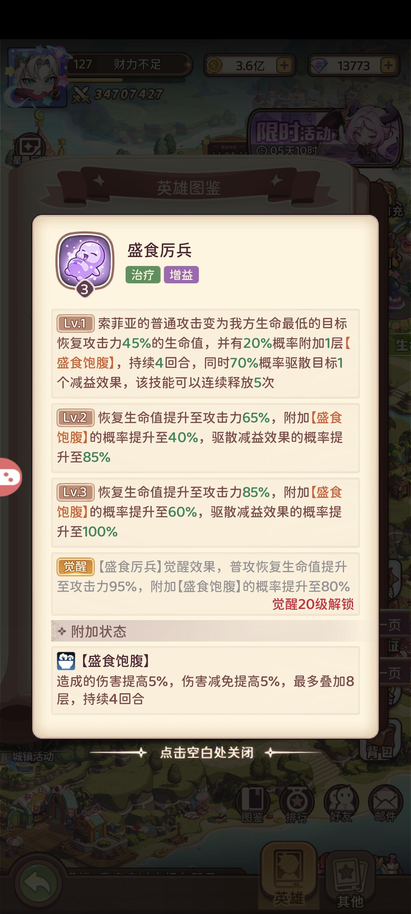 主动技能 为队友套上复活甲 并为攻击最高的三名队友添加攻击提升的buff 觉醒后无法驱散