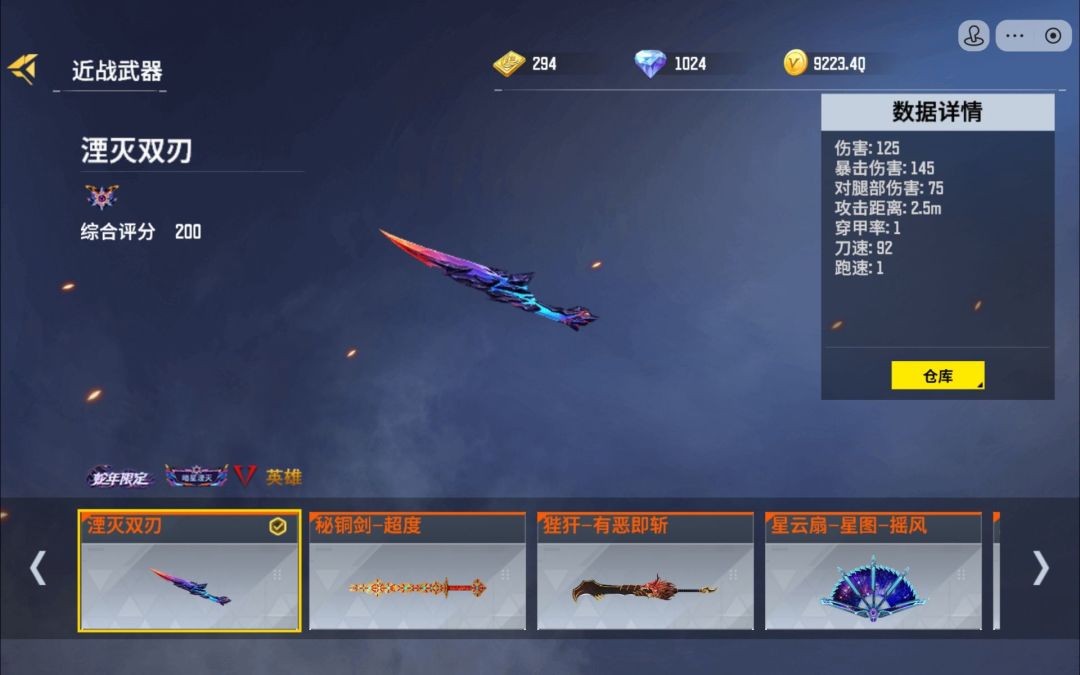 作为龙年年套的近战武器——湮灭双刀的数据如下: