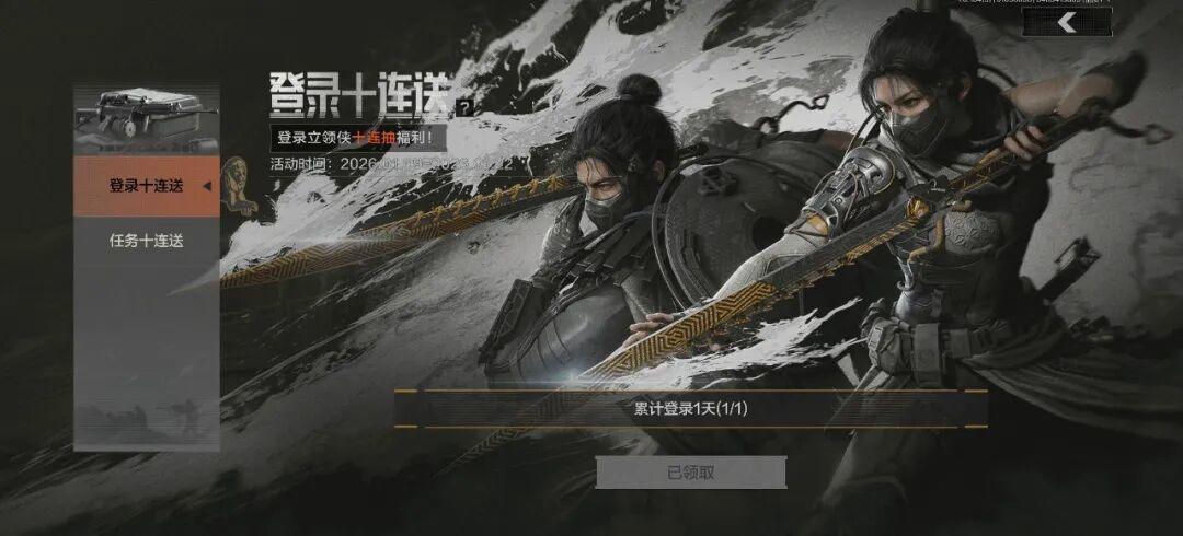 全新军需送二十连!活动期间,登录即可领取侠军需卡(赠送)*10,完成任务可再领取侠军需卡(赠送)*10,共计可获得侠军需卡(赠送)*20!