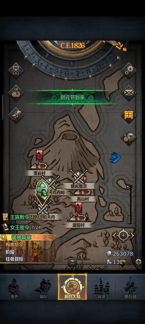 的日常做牢旅程了(记得先把要塞之类的清了,把历练安排上),有大量资源的话可以把自动拜神拉起来(优先拜古特,精灵,塞宁or切瓦),可以把之前的高等级队伍放城堡里守堡,然后找一个活得久一点的家伙(血量要低于8)带上自杀小盾,随便接一个任务,这边建议是看你要做什么血的神子就去那个国家接任务(方便你结婚提血),然后进入任务如视频↓