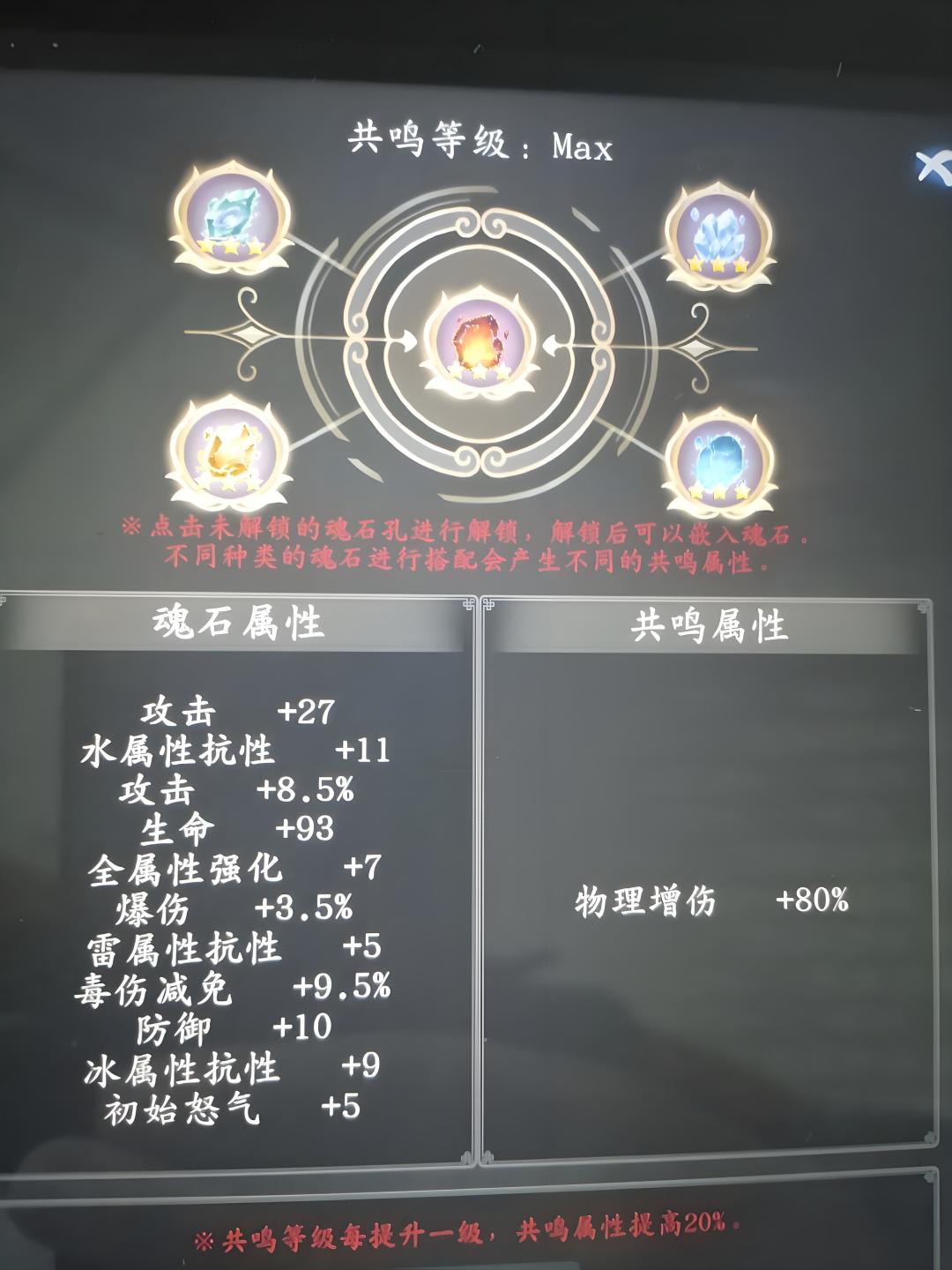 详解角色核心属性。以黎幕芸为例:从黎幕芸的2主动技能,3个被动效果以及突破时增加属性看;黎幕芸主要该堆物理增伤、增伤、爆伤、力量。所以黎幕芸该弄的魂石共鸣效果和装备效果我发在上面图里了。我这一击下去十几二十万的伤害