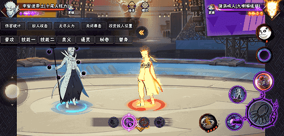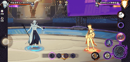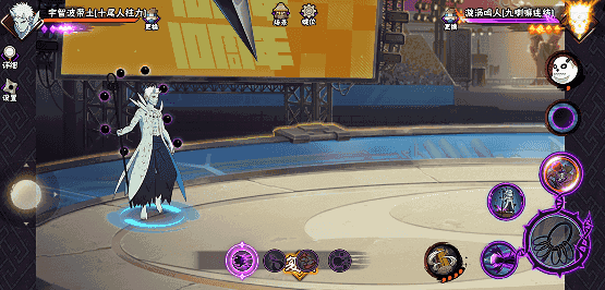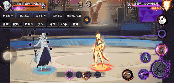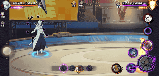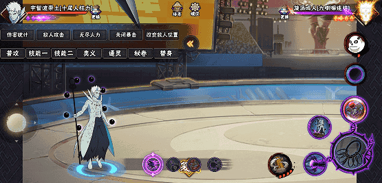 在二技能任意段数划普攻,十尾带土向前方地面发射针形态求道玉,可扫地,同时对普攻进行强化。若二技能格挡成功后点击普攻,十尾带土先高速移动到敌人身后再发射针形态求道玉。