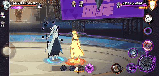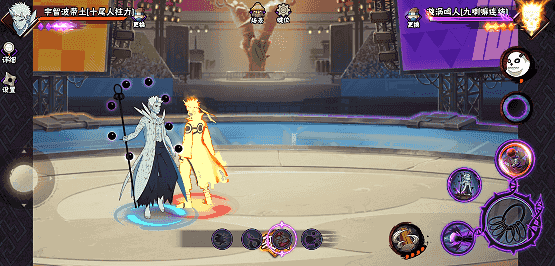 十尾带土的求道玉不仅可以变化成各种形态攻击,还能变成护盾,有较强的格挡能力。十尾带土还可跳段打出普攻或强化普攻,普攻和技能之间灵活的联动可以打出多种表现。