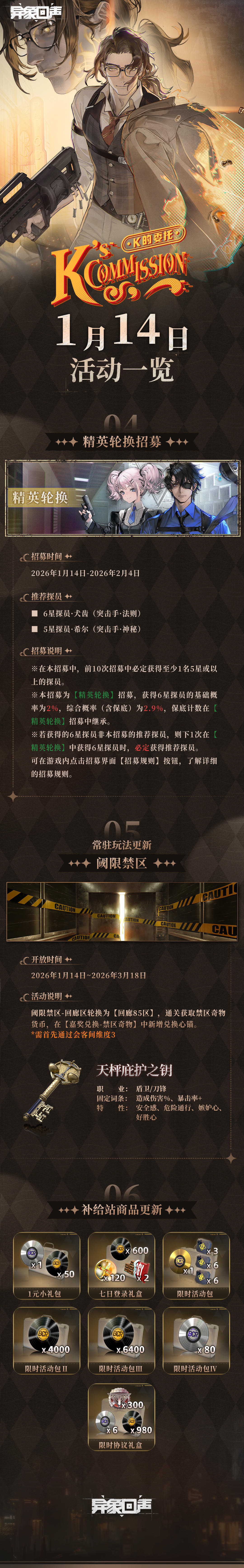 《异象回声》将于1月14日更新「K的委托」版本!本次调查的情报档案已由特别调查科探员整理并放在科长的办公桌上,请科长及时查阅!