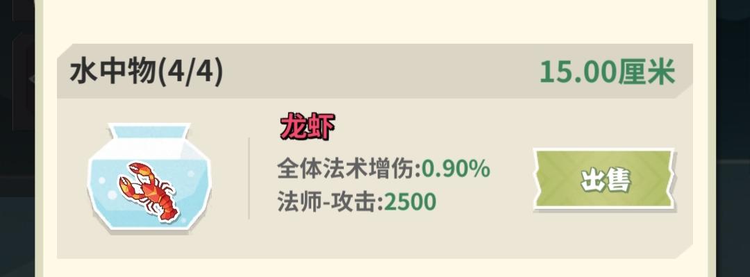 前期没有熊猫鱼可用极乐赛德鱼代替(最长小型鱼8.00厘米)