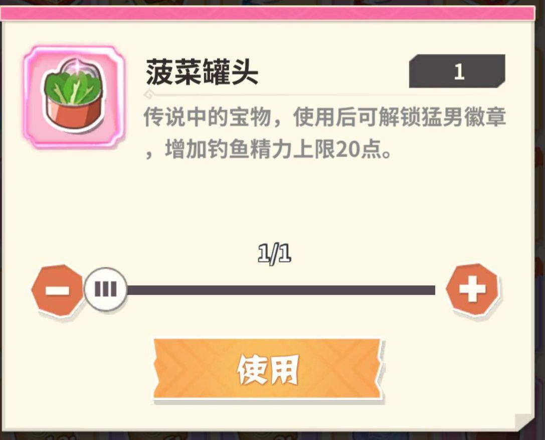 65级即可解锁钓鱼,钓鱼有概率钓到菠菜罐头,具体属性如下图。