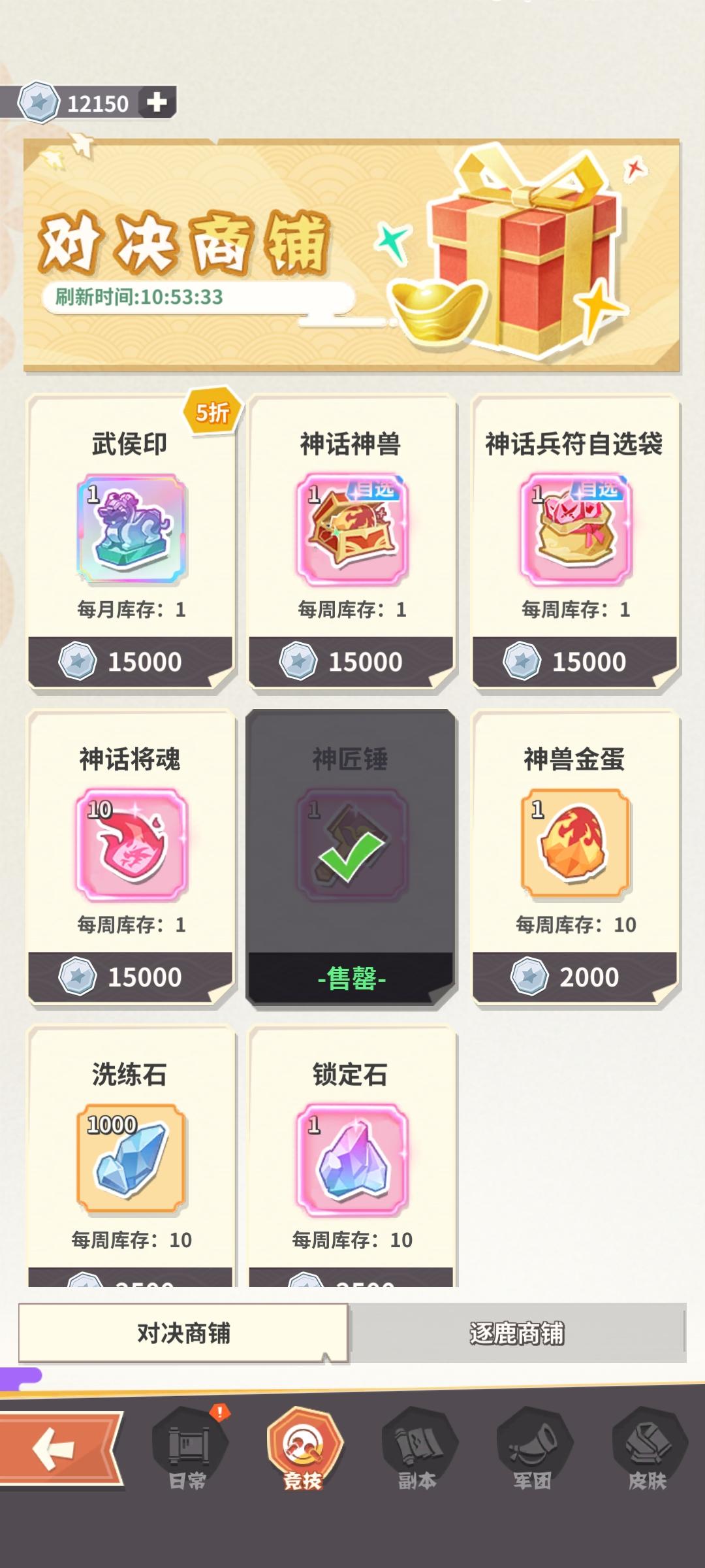 此商店每月必买的武侯令,每周必买的神匠锤,多余的可以选择神兽自选