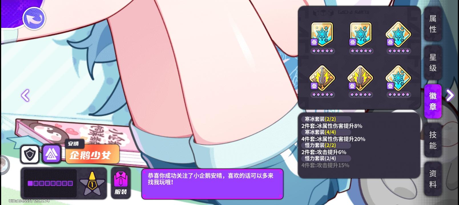 打伤害推荐四冰伤二攻击力,可以吃到减cd,企鹅能不能吃到暴击的话无法确定