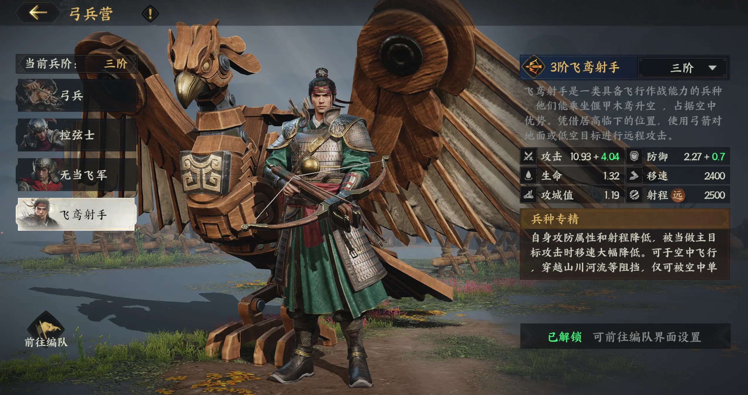 所以一般是中后期打架才转成这个兵种,开荒阶段弓兵建议用控弦士兵种。