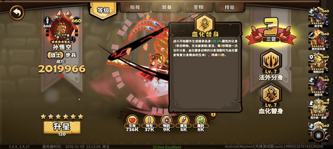 双猴分身不吃任何buff,到手就是巅峰形态,上限不错,下限很高,十分通用。